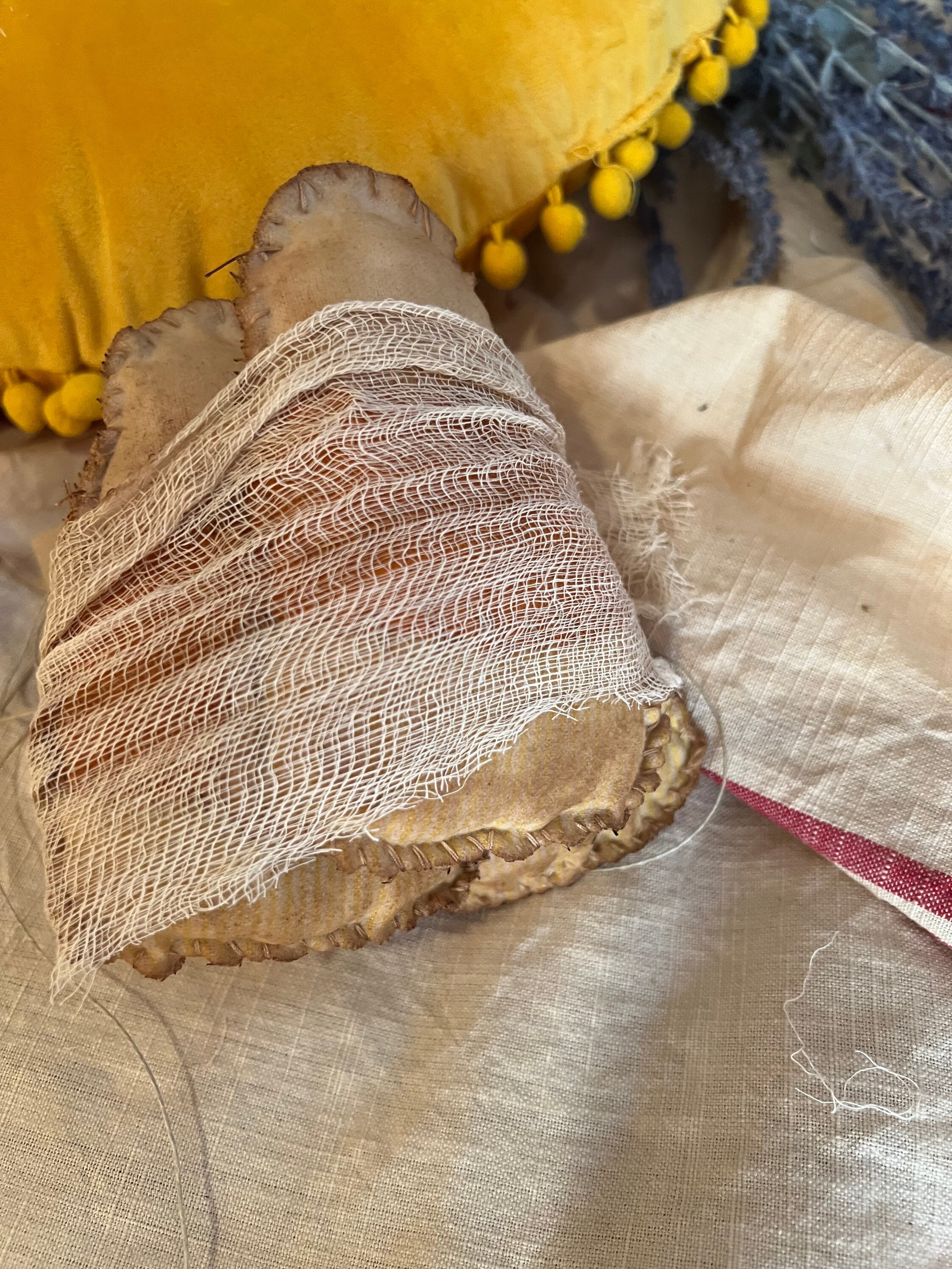 Primitive Candy Corn Bowl Fillers. Handmade. This has 3 tea stained candy corns made with tea stained flannel, tea stained tags, tea stained cheese cloth. The height of the Candy Corn is 5.5 inches. Great for bowl fillers, mantel decor, table decor, etc.